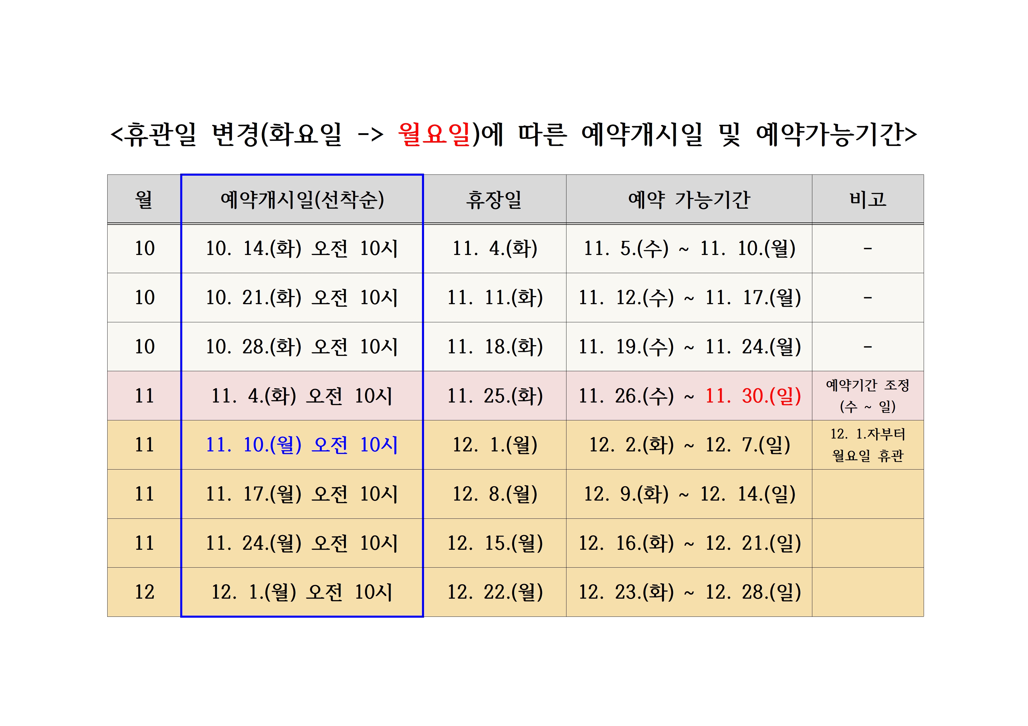 2025년 곡교천야영장 휴관일 변경에 따른 예약 가능기간 및 예약개시일을 안내드립니다.